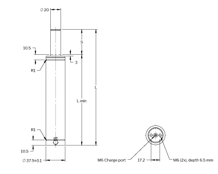 Springs with stroke lengths over 25 mm should always be attached to the tool, using a flange or the tapped holes in the bottom of the spring. We also recommend fixing of shorter stroke springs for optimal service life. The maximum frequency for the spring is 100 strokes/minute.